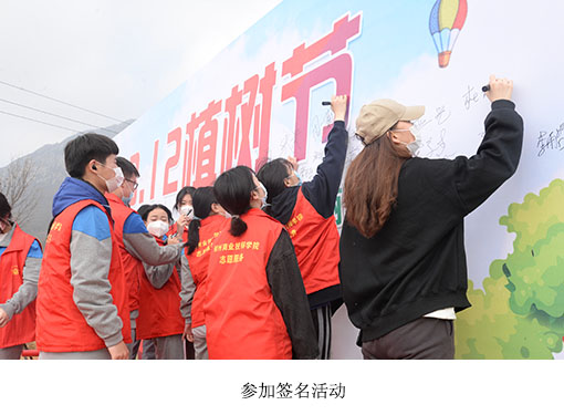 活动现场,师生志愿者们热情高涨、干劲十足,经过简单的技术培训,大家手持铁锹、水桶等,分工协作,有的铲土挖坑、有的运树掩埋、有的浇水固土……随着一道道工序一丝不苟地完成,一棵棵小树扎根沃土、昂然挺立。据统计,当天植树活动共种植树苗500余棵。