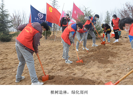 阳春三月,万物复苏,苗木吐绿。3月12日,郑州商业技师学院团委组织百余名师生志愿者赴郑州市陈家门全民义务植树基地开展植树活动,并参加郑州市“推动国土绿化提速行动 建设森林生态美丽郑州”义务植树活动启动仪式,学院志愿者代表发出“植树造林,共建共享生态美丽幸福郑州”倡议。