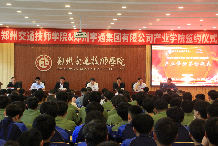 近日,郑州交通技师学院与郑州宇通集团有限公司产业学院签约仪式在学院17号楼三楼报告厅举行。