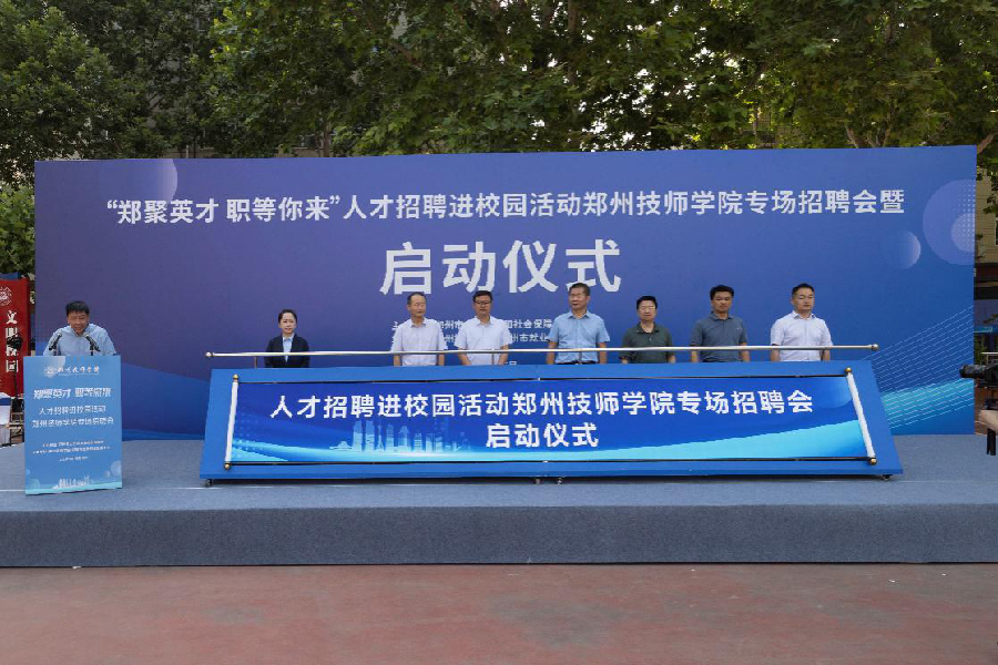 5月22日,由郑州市人力资源和社会保障局主办,郑州技师学院、郑州市就业创业服务中心承办的2024年“‘郑’聚英才、‘职’等你来”人才招聘进校园活动郑州技师学院专场招聘会在郑州技师学院陇海路校区举行。郑州市人力资源和社会保障局党组成员、一级调研员丁进芳、四级调研员徐立新等局领导莅临现场,与郑州市就业创业服务中心、郑州技师学院有关领导及部分企业代表一同出席活动。