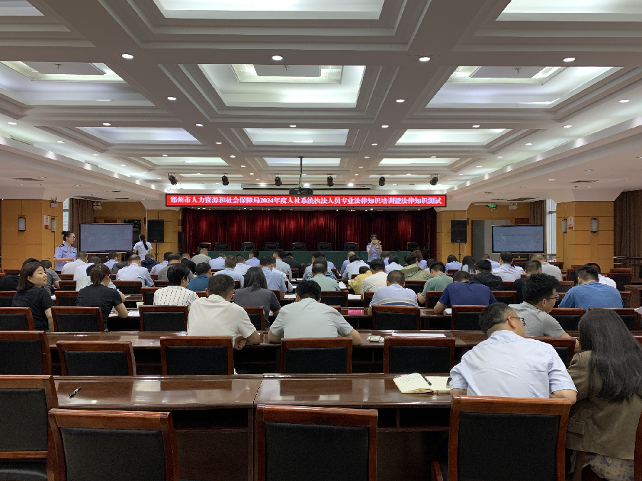 近日,郑州市人力资源和社会保障局举办了2024年度人社系统行政执法人员培训暨法律知识测试,局机关各处室,局属相关单位行政执法人员共计100名同志参加。