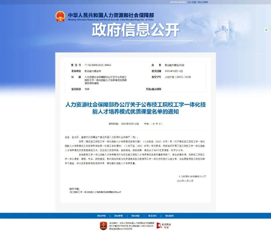 近日,人力资源社会保障部办公厅发布《关于公布技工院校工学一体化技能人才培养模式优质课堂名单的通知》,郑州财经技师学院交通运输系教师杨爽的《吉利帝豪EV450驱动电力故障检修》课程和财贸管理系教师刘玉玲的《郑州二砂文创园图文制作与推广》两门课堂顺利通过国家评审,成功入选全国技工院校工学一体化技能人才培养模式优质课堂。