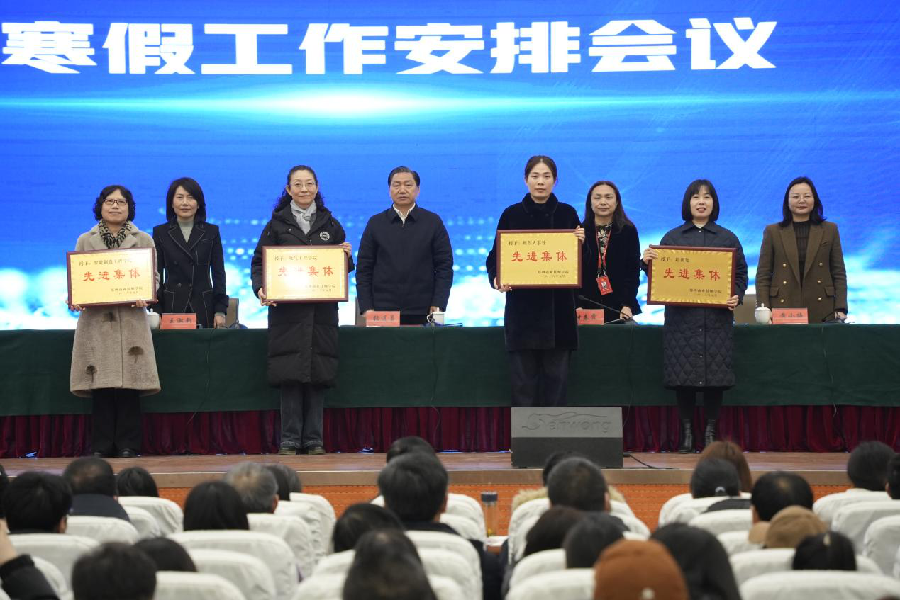 张道勇从党建引领、产教融合、技能竞赛、招生就业培训、三全育人、文明创建、平安建设、队伍建设、服务保障、效能提升等10个方面对2025年工作进行总结,并明确了2026年寒假重点工作任务:一是竞赛集训不松懈,确保训出实效;二是安全防范不麻痹,确保防线牢固;三是招生宣传不减力,确保任务达标;四是访企拓岗不止步,确保就业提质;五是家校共育不打烊,确保健康成长;六是走访慰问不敷衍,确保暖心到位;七是开学准备不含糊,确保平稳有序;八是廉政建设不停歇,确保清风正气。