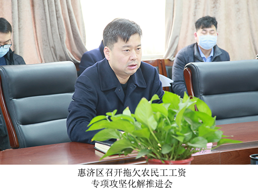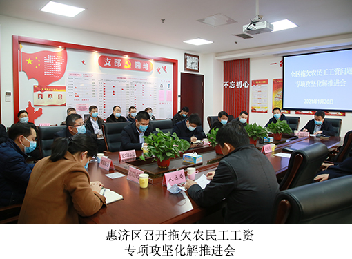 为进一步扎实做好惠济区根治欠薪工作,1月20日下午,惠济区召开了拖欠农民工工资专项攻坚化解推进会议,区常务副区长赵敏祥主持会议,区人社局、信访局、财政局、住建局、教育局、城管局、林业园林局和8各镇办等主要负责同志参加会议。