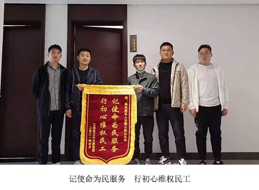 “太感谢你们了,维护了我们的合法权益,减轻了我的生活压力,你们真心实意帮我解决了大难题......”4月26日,杜某将一面写有“记使命为民服务,行初心维权民工”的锦旗送到了郑东新区管委会人事劳动局劳动关系中心工作人员手中,以表达感激之情。