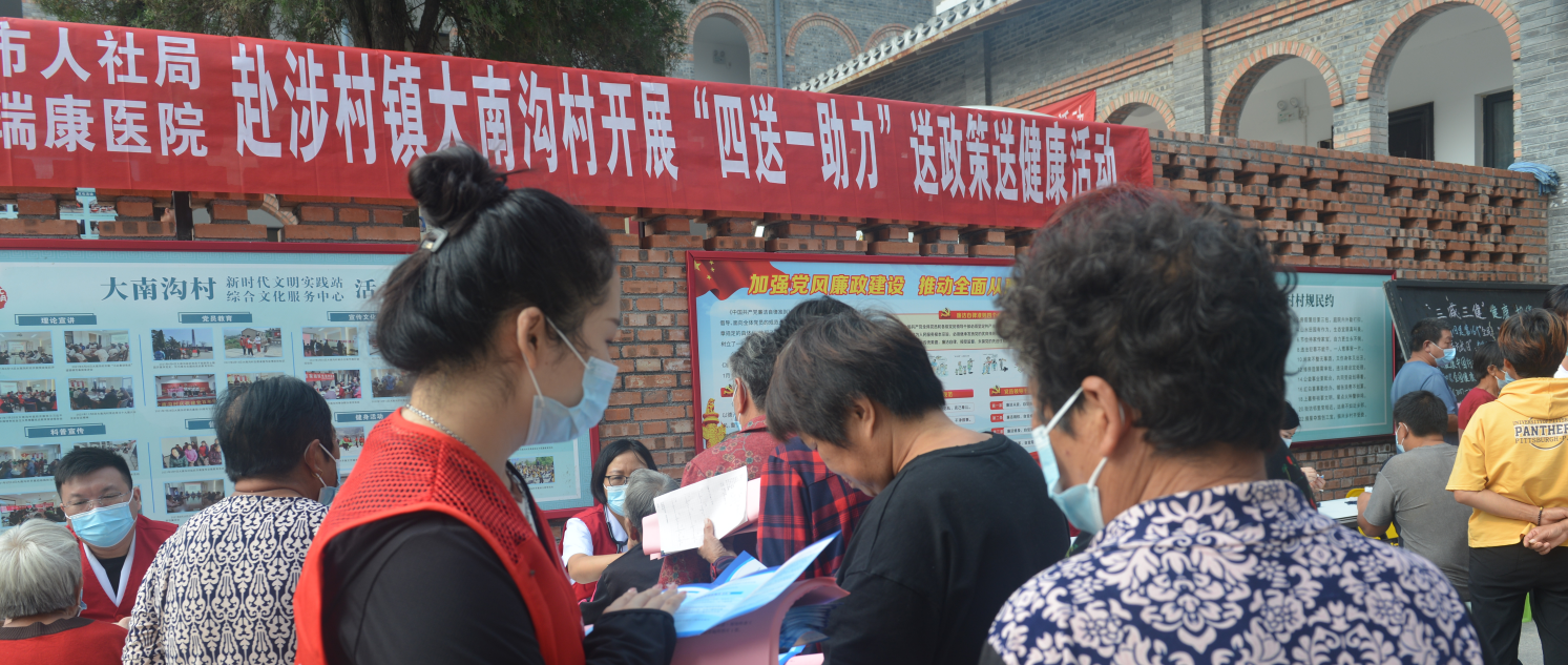 为贯彻落实省、市文明委关于开展“四送一助力”结对帮创活动部署,9月13日,巩义市人社局联合市瑞康医院赴涉村镇大南沟村组织开展了“四送一助力”送政策送健康活动。