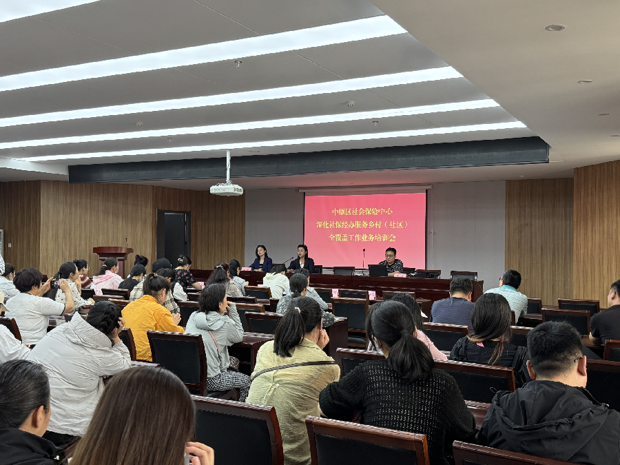 5月7日,中原区人社局组织召开社保业务全覆盖工作培训会,全区14个街道办事处及163个社区业务经办人员积极参与。