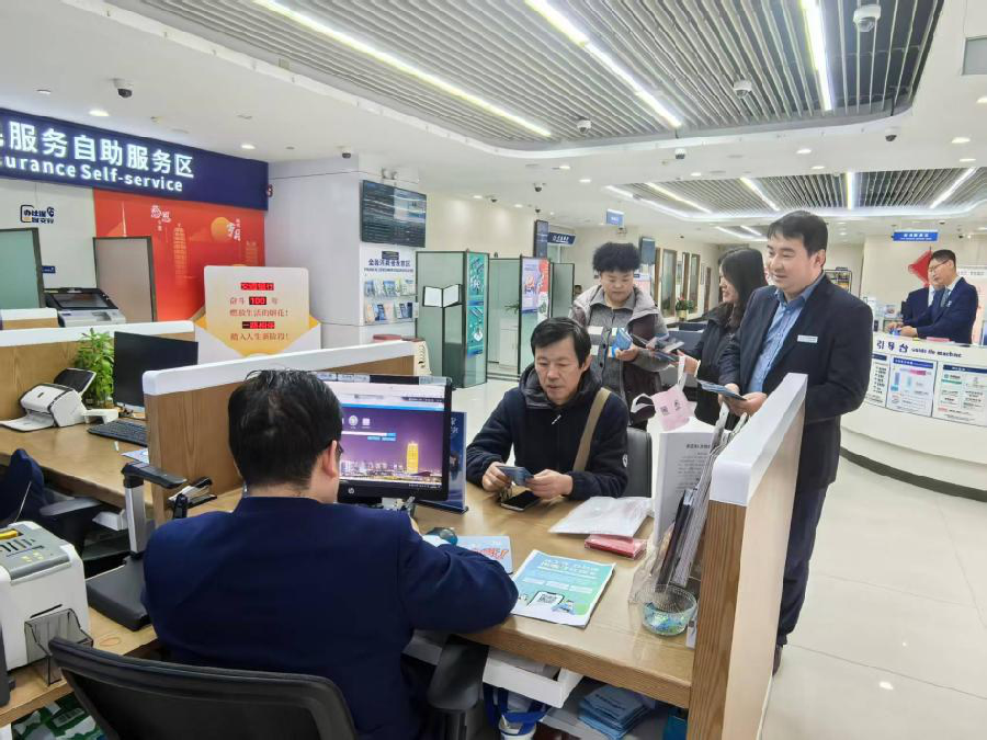 中原区人社局近期开展的“社保服务进万家”活动,该局工作人员走进中原中路交通银行开展专项服务。