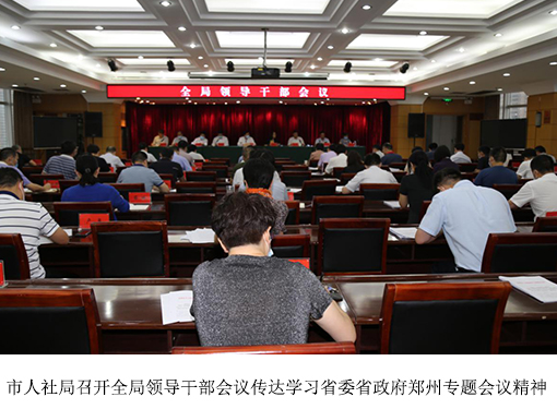 7月10日,郑州市人社局召开全局领导干部会议,传达学习省委省政府专题会议、市委常委务委员会会议精神。局党组副书记王翠玲主持会议,局党组书记、局长李德耀出席会议并讲话。局党组成员、机关县处级干部、机关中层正职和局属单位党政主要负责人参加会议。
