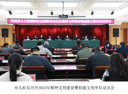 会议传达学习了习近平总书记关于精神文明建设的有关重要讲话精神和2022年国家、省、市文明办主任会议精神,回顾总结了局系统2021年精神文明建设工作,宣读了《郑州市人力资源和社会保障局2022年创建河南省文明单位标兵工作实施方案》和《郑州市人力资源和社会保障局精神文明建设工作考核评价办法(试行)》,安排部署了局系统2022年精神文明建设暨文明单位创建主要工作。