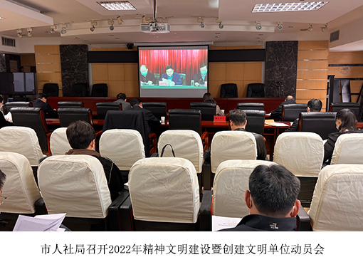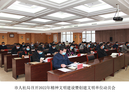 3月22日,市人社局组织召开了2022年精神文明建设暨创建文明单位动员会。会议由局党组副书记王翠玲主持。局党组书记、局长李德耀,局党组成员、机关县处级干部、各处(室)负责人、局属单位党政正职等80余人参加。会议严格落实我市疫情防控有关要求,设立了主会场和分会场,每个会场均不超过50人。