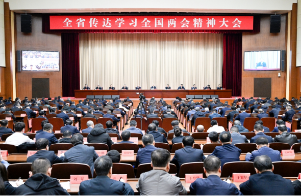 3月12日,吉林省召开全省传达学习全国两会精神大会。图片来源:吉林日报