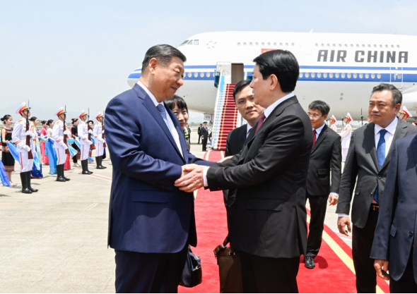 新华社河内4月14日电(记者杨依军 邹学冕)当地时间4月14日中午,中共中央总书记、国家主席习近平乘专机抵达河内,应越南共产党中央委员会总书记苏林、越南社会主义共和国主席梁强邀请,对越南进行国事访问。