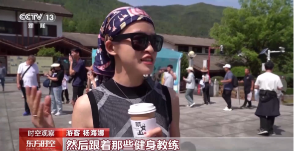 游客 杨海娜:我是跟朋友一起来爬山,跟着健身教练一起运动了一下,我感觉非常有活力。