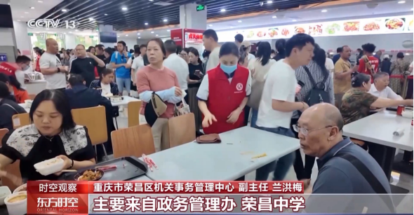 重庆市荣昌区机关事务管理中心 副主任 兰洪梅:我们食堂的70余名志愿者,主要来自政务管理办、荣昌中学、永荣中学、宝城中学、职教中心等单位,他们从每天早上的9时30分坚守到晚上的8时30分,主要开展的是秩序维护、线路引导、现场答疑等,为游客提供舒适的用餐环境。