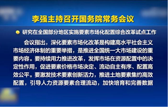 8月29日国务院常务会议聚焦要素市场化改革,将其定位为构建高水平社会主义市场经济体制的重要举措和推进全国统一大市场建设的重要内容。